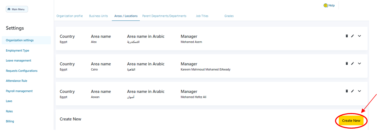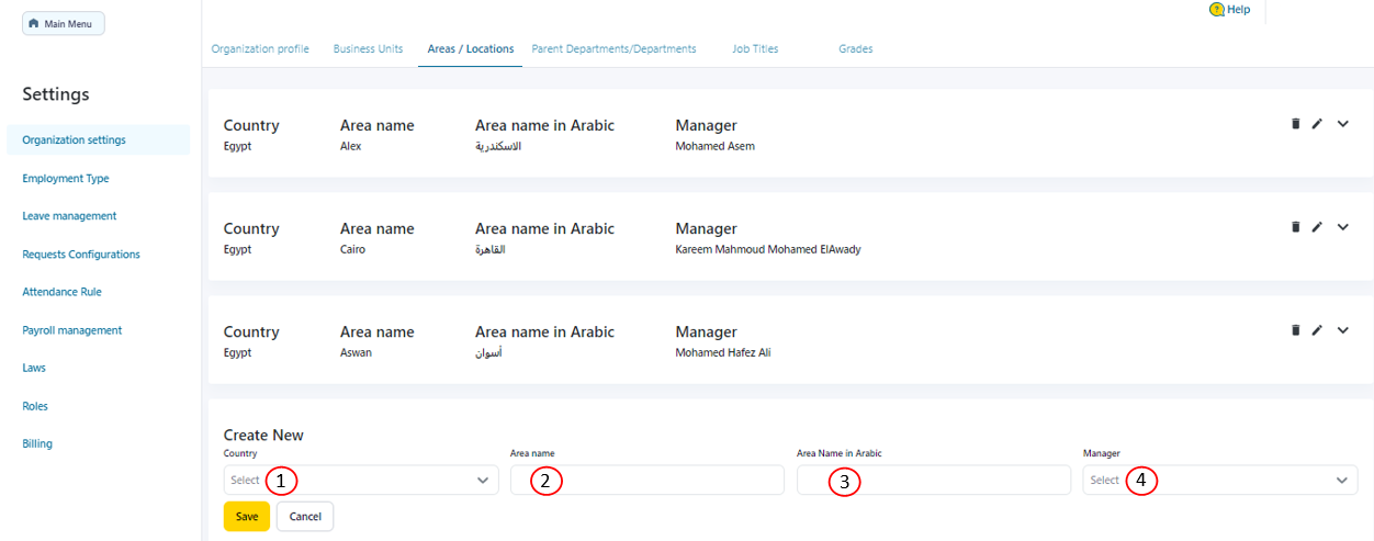 4.4-Manager: Manager Name of the added Area/Location and is selected from pre-added employees