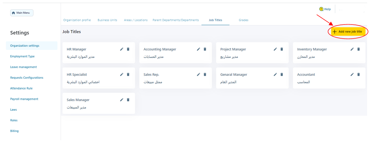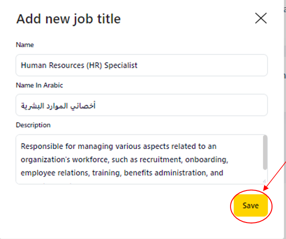 4.2-Name in Arabic: Job title name in Arabic Language and it should not be left blank