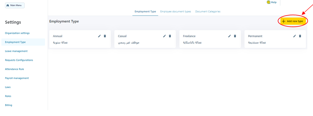 4.2-Name in Arabic: Employment Type name in Arabic Language and it should not be left blank