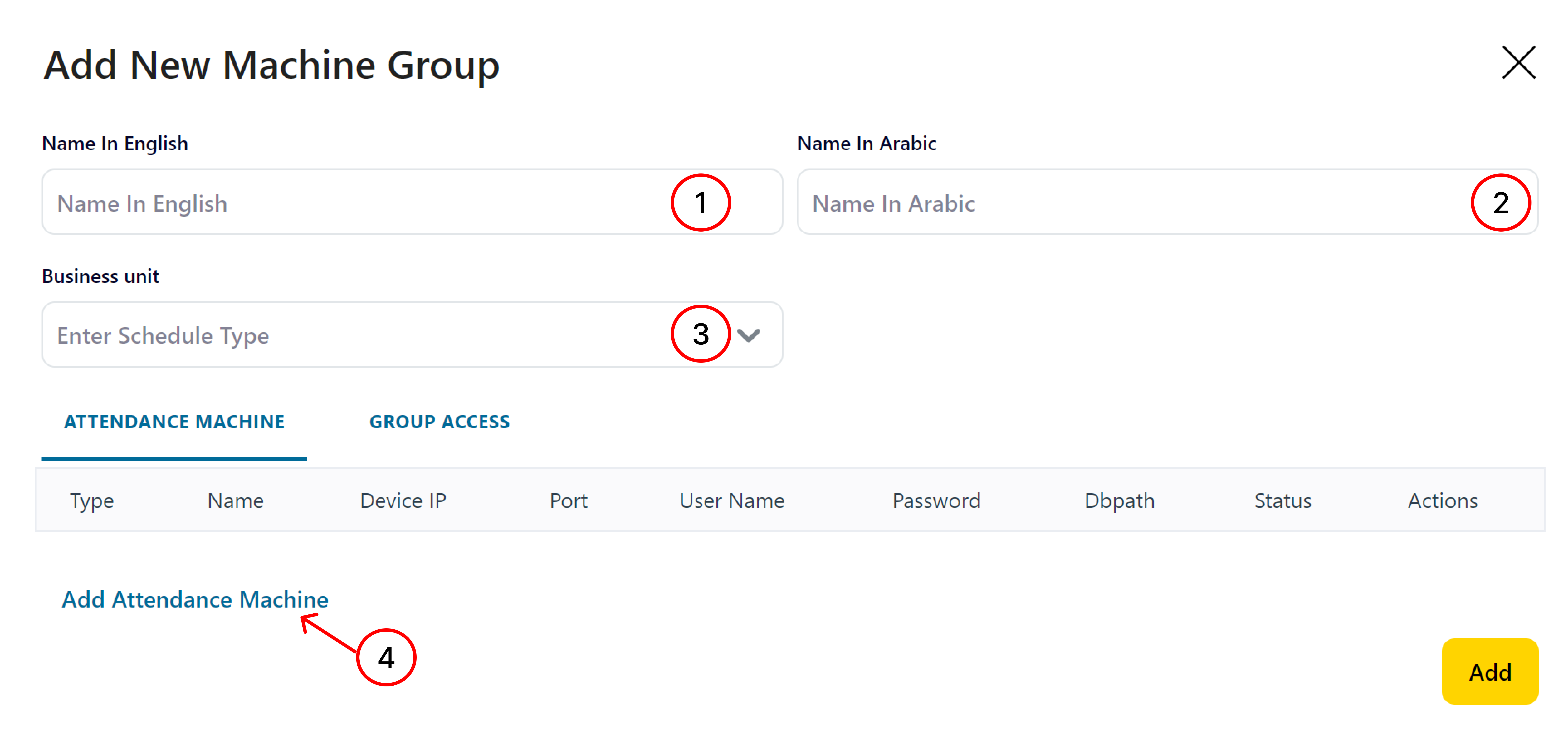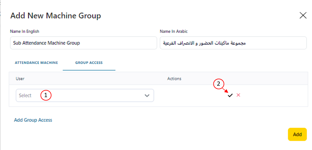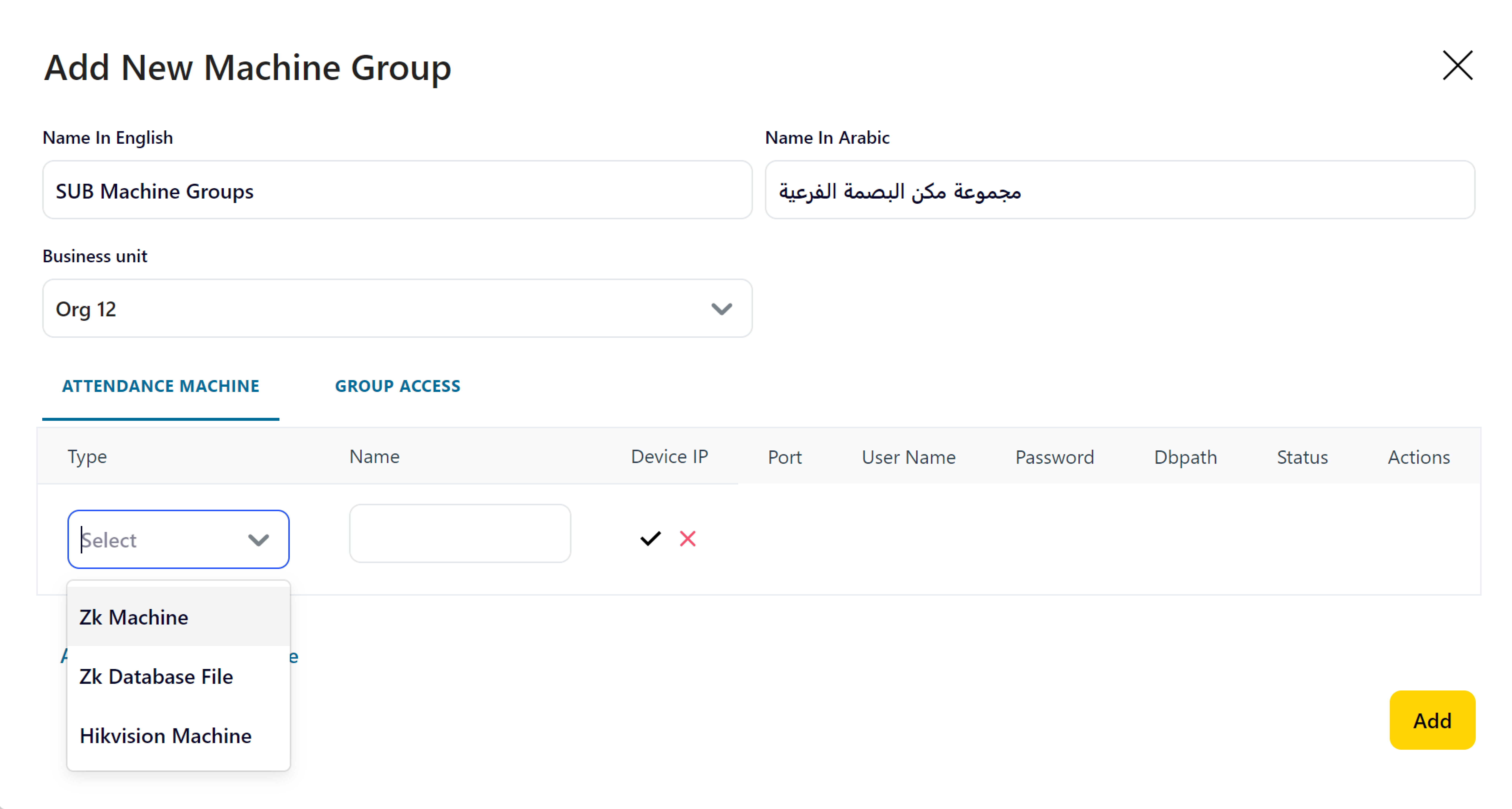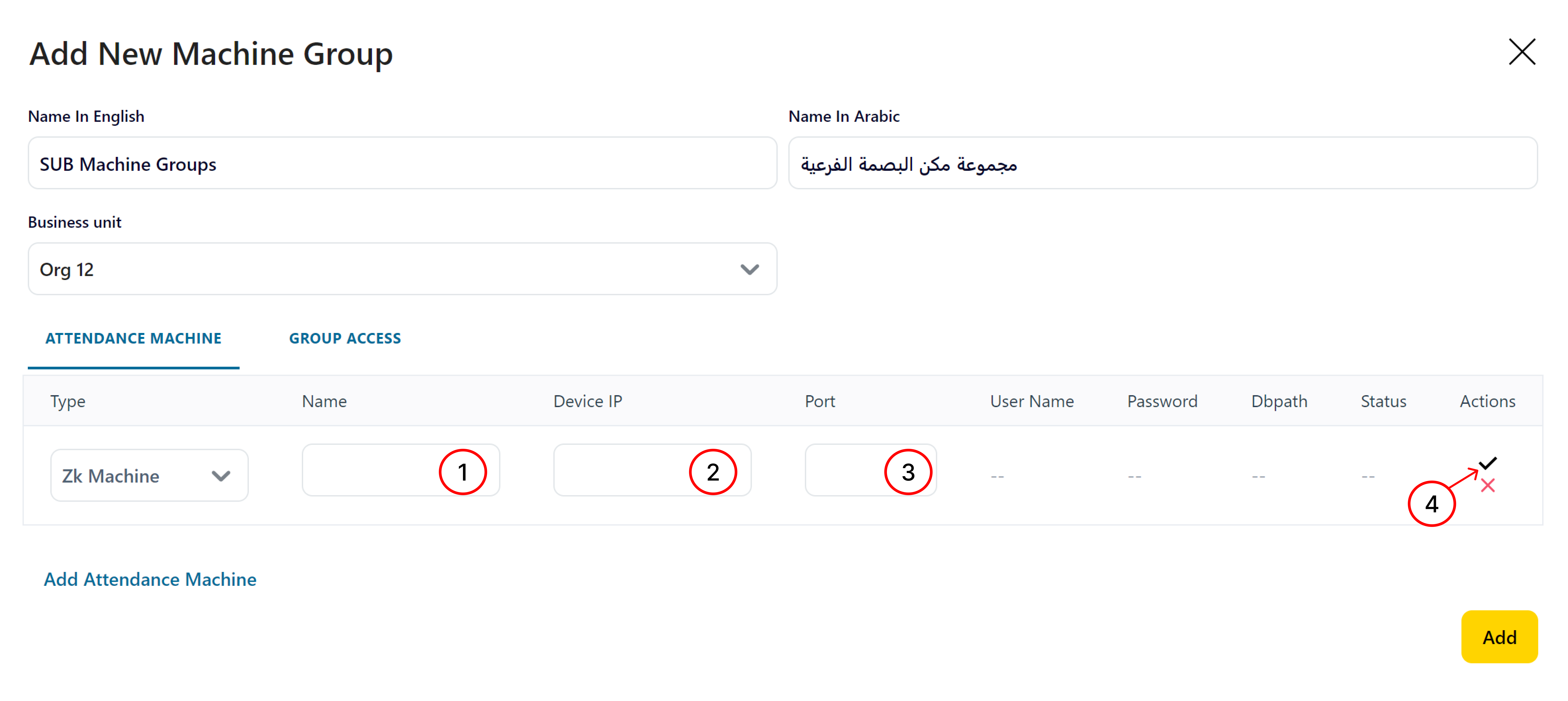 16- Click on “Add” Button to add the created Attendance Machine Group