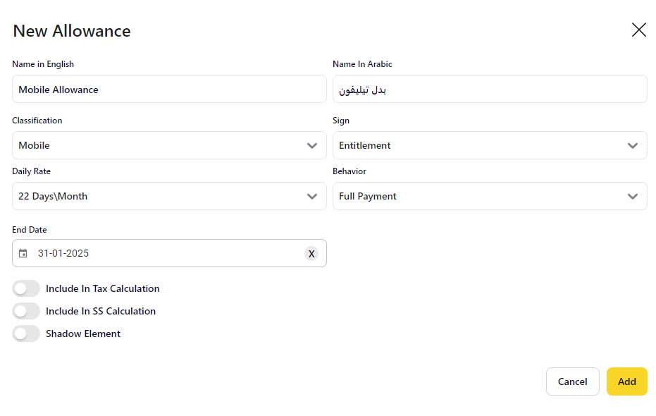 4.2 - Name in Arabic: Periodic Allowance Name in Arabic that should not be left blank