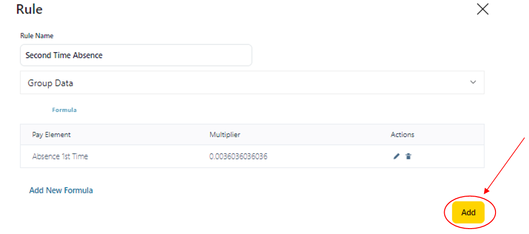 7- Write down Rule Name and choose Group Data then click on “Add New Formula” button
