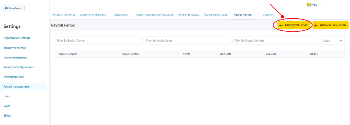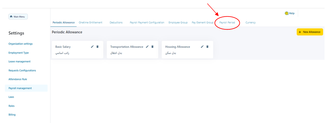 3- Click on “Payroll Period” tab