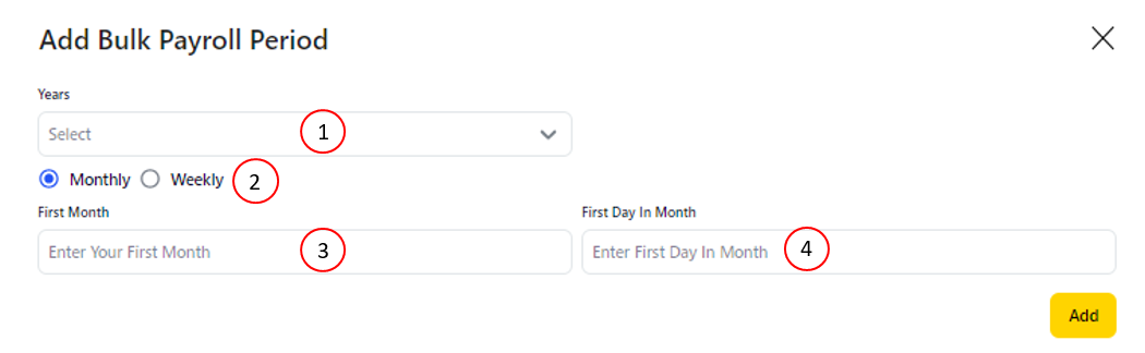 5- Fill in the required Bulk Payroll Period as follows