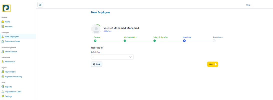 9- Select “User Role” from pre-defined roles , Roles Information could be viewed from “Settings” in main menu under “Roles” tab