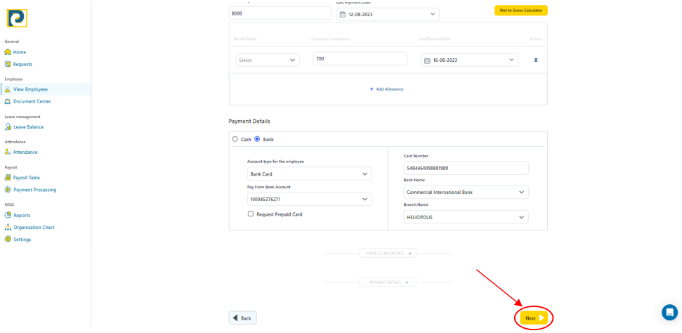 8- After Filling in the required Salary & Benefits Information, click on “Next” button