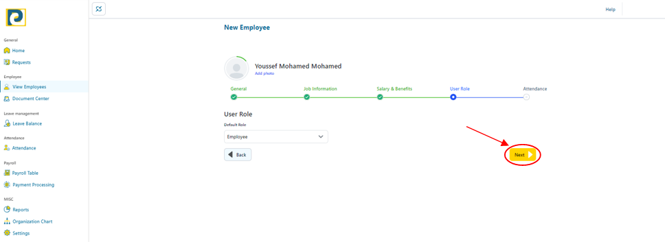 7.1.2-Add Allowance: Allowances could be added to employee profile from pre-added benefits from Periodic Allowances in Payroll Management settings with a requirement of entering Company Contribution amount and last payment date