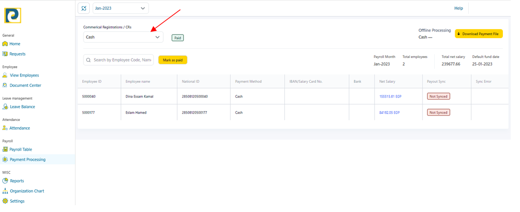 3- Choose Payment Method either “Cash” or a Bank from pre-added Banks in Payroll Payment Configuration Settings