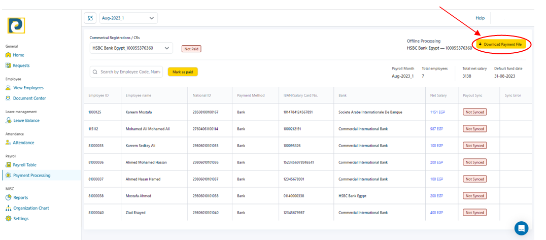 2- Select Payroll from pre-added Payrolls in Payroll Table