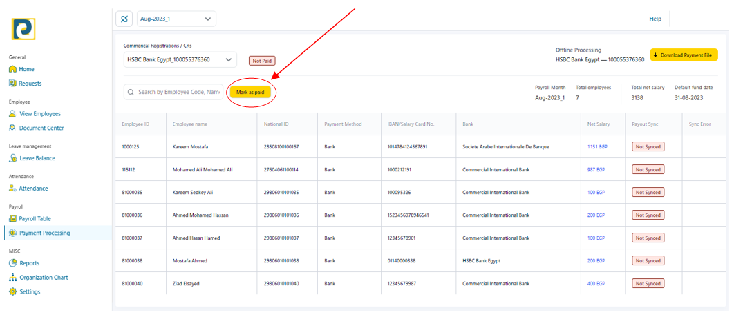 5- Revise on the Payroll Processing Information then click on “Mark as Paid” button