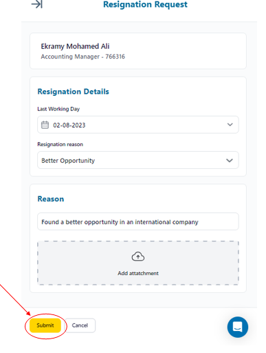 3.2-Request Type: Choose “Resignation Request” from the drop-down menu
