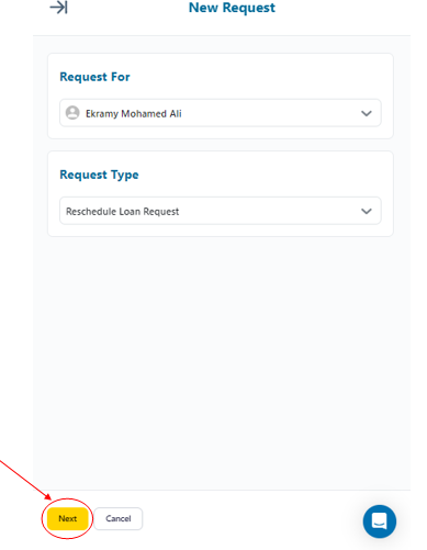 3.2-Request Type: Choose “Reschedule Loan Request” from the drop-down menu