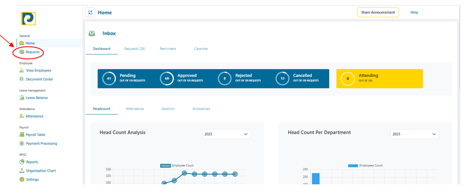 1- Click on “Requests” from main menu