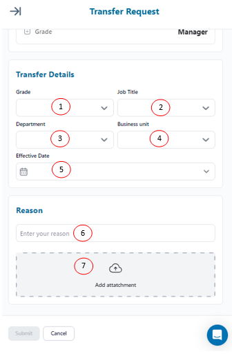 5.4-Business Unit: Business Unit where the employee is going to be involved in after the transfer is done which is chosen from pre-added Business Units in Organization Settings