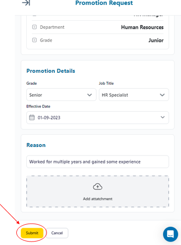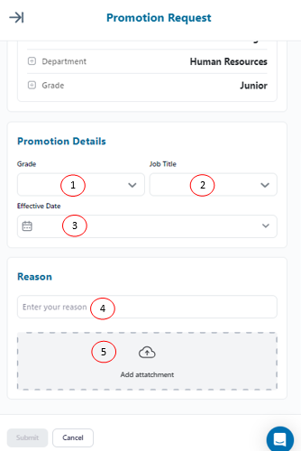 5.1-Grade: Job Grade after the promotion is done that is chosen from pre-added grades in Organization Settings