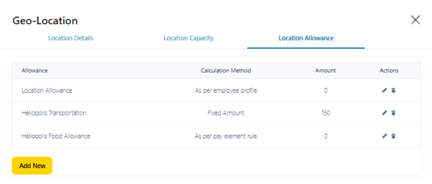 Configure location-based allowances from Payroll Management using Periodic or One-Time Entitlements.